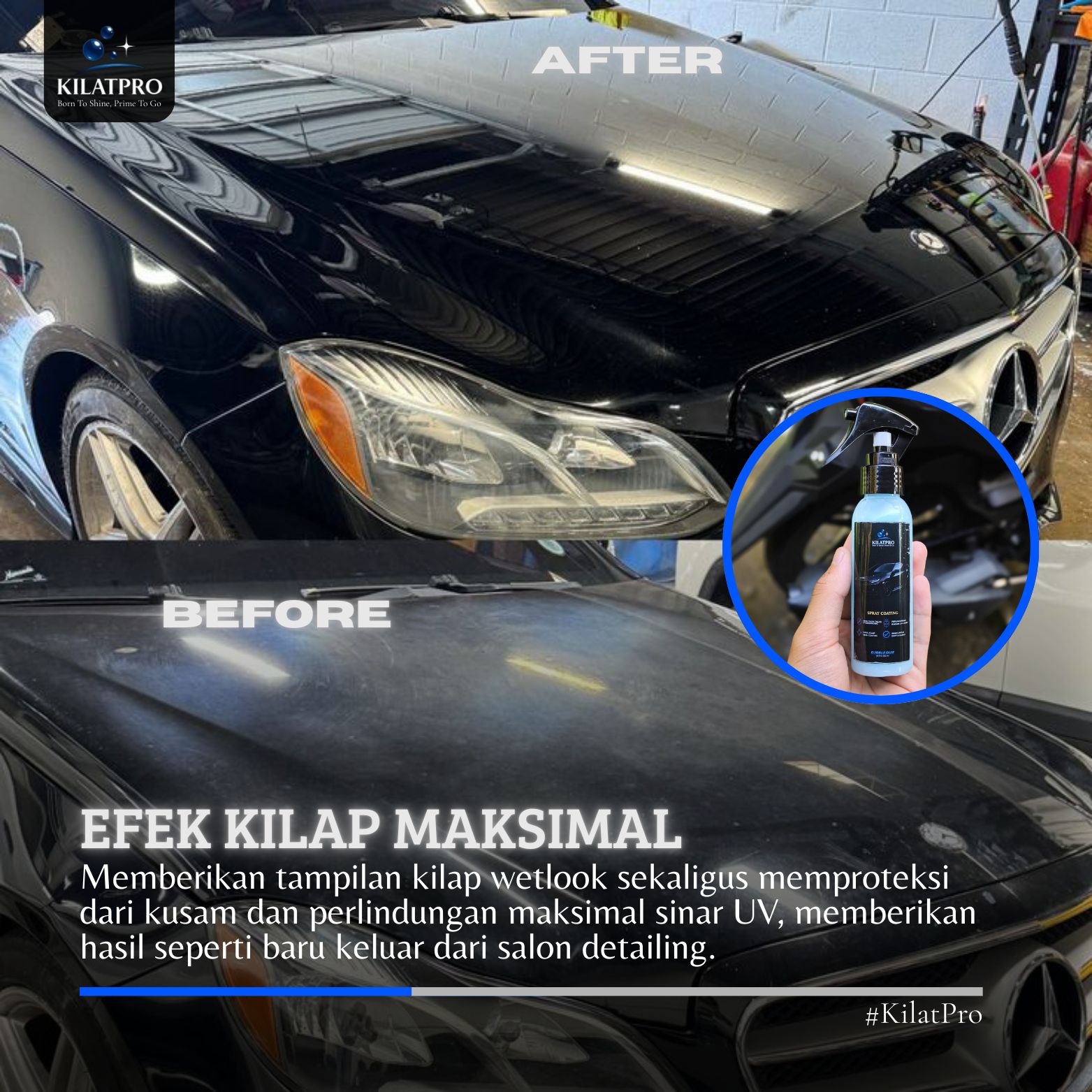 KilatPro adalah brand perawatan kendaraan detailing, yang dimana hadir sebagai solusi untuk kita yang menginginkan hasil cuci kendaraan seperti di salon tanpa harus keluar rumah, diformulasikan dengan bahan bahan terbaik dengan melakukan riset uji coba selama 6 bulan, sehingga kualitasnya